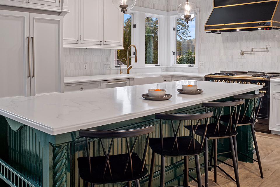 Quartz’ ability to resist mold or mildew growth and damaging chemicals makes it an even more attractive choice for active, family kitchens.